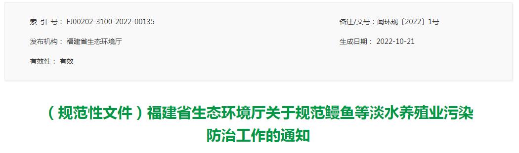 省生態(tài)環(huán)境廳關(guān)于規(guī)范鰻魚等淡水養(yǎng)殖業(yè)污染防治工作的通知